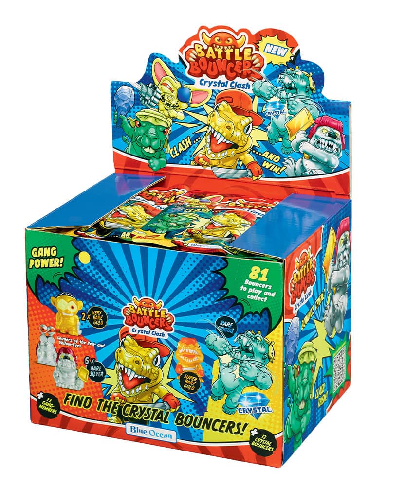 Una collezione esplosiva con 81 personaggi da collezionare, super colorati e pronti a sfidarsi in combattimenti senza esclusione di… rimbalzi! Piccoli, resistenti e imprevedibili, i Battle Bouncers sono fatti per lanciarsi, scontrarsi e rimbalzare in epiche battaglie.