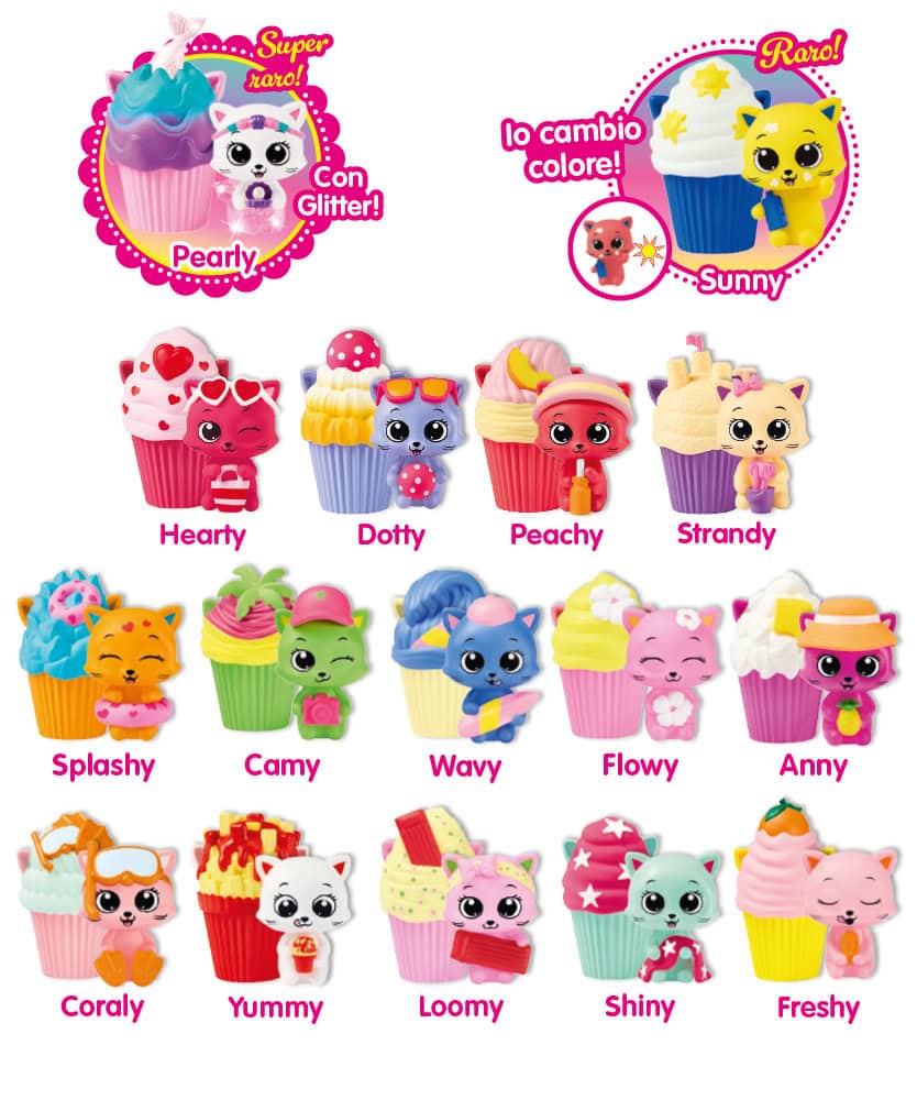 La collezione comprende 16 irresistibili CupCakeCats da collezionare, tutti a tema vacanza, con accessori super colorati e dettagli adorabili. E tra loro si nascondono due personaggi davvero speciali:
