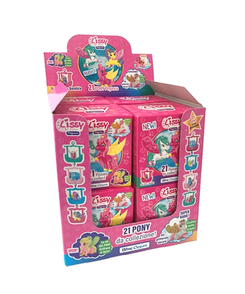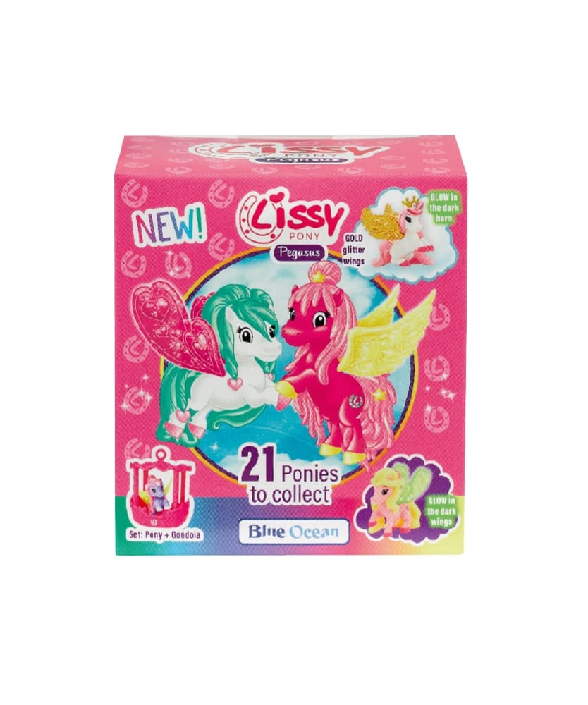 Collezionali tutti, apri le gondole e lasciati trasportare dalla fantasia nel cielo incantato dei LISSY PONY PEGASUS, dove la magia brilla anche al buio.