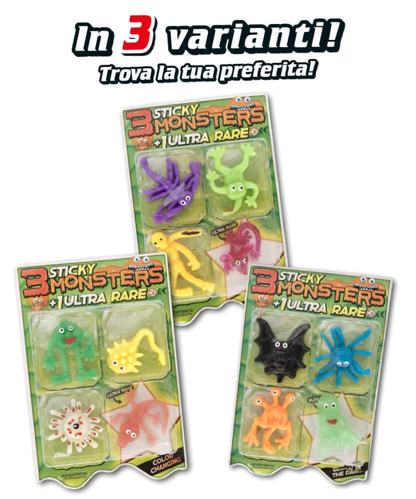 In questa uscita trovi gli STICKY MONSTERS, i mostriciattoli coloratissimi, super stretchy e appiccicosi pronti a diventare i tuoi nuovi inseparabili compagni!