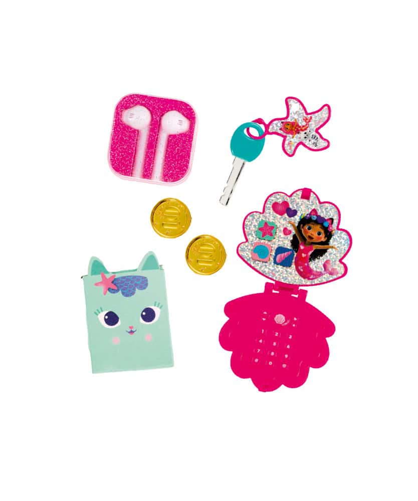 In regalo trovi il fantastico SET DA BORSA DI GABBY con telefono, auricolari e chiavi: tutto l’occorrente per vivere avventure proprio come Gabby!