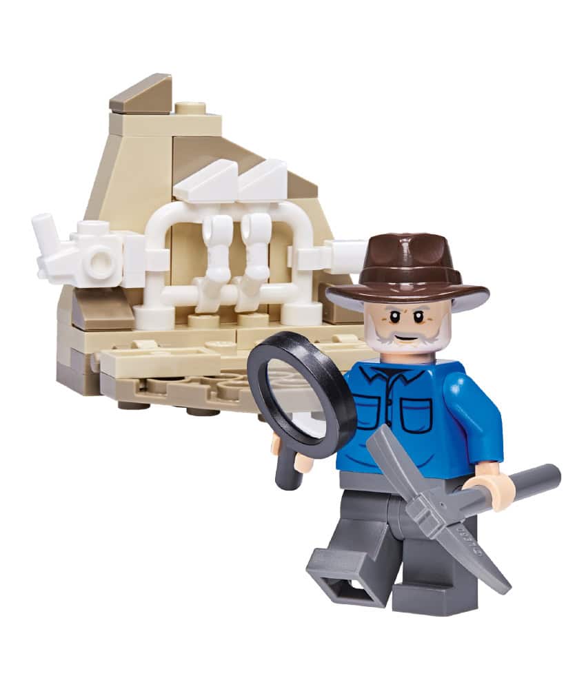 Il dottor Alan Grant non ha mai trovato un fossile così sorprendente… e grazie alla sua nuova attrezzatura - piccone, lente d’ingrandimento e un cappello super stiloso - è pronto ad analizzare ogni dettaglio di questo ritrovamento eccezionale.