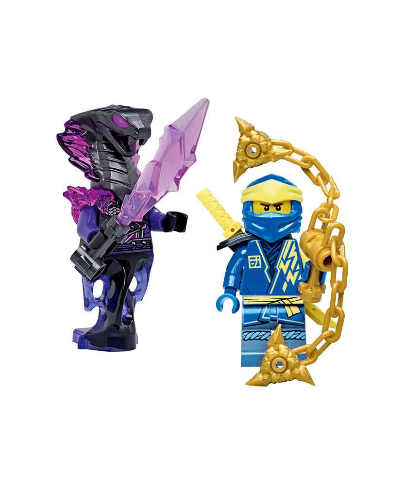In questo numero trovi 2 Giochi LEGO: JAY, con la sua tenuta blu da combattimento, katana e nunchaku da 9 cm, contro la malvagia ASPHEERA, pronta a scatenare i suoi poteri.